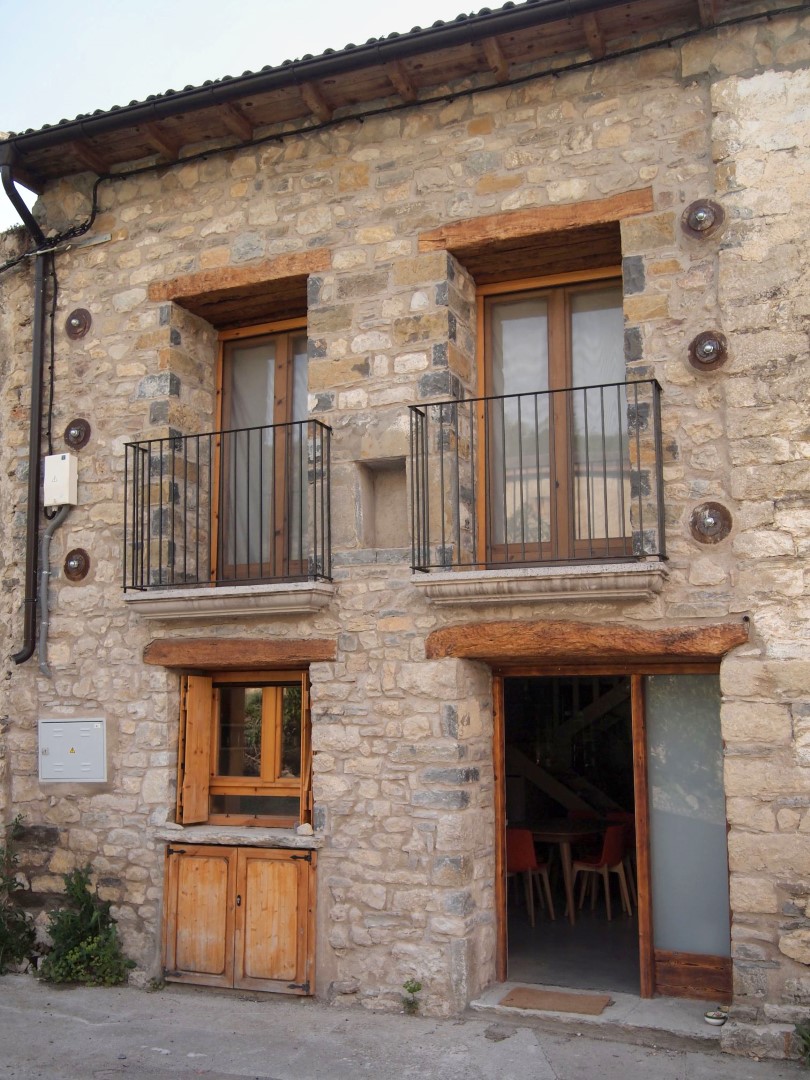 El edificio antiguamente formaba parte de un conjunto con la casa vecina y está orientada este-oeste. Se conservaron los muros de piedra existentes y el tejado, que ha sido rehabilitado más recientemente, pero el interior fue completamente vaciado y remodelado.